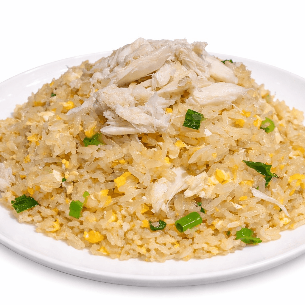 Fresh dungeness crab meat, eggs, yellow onions, green onions, and garlic