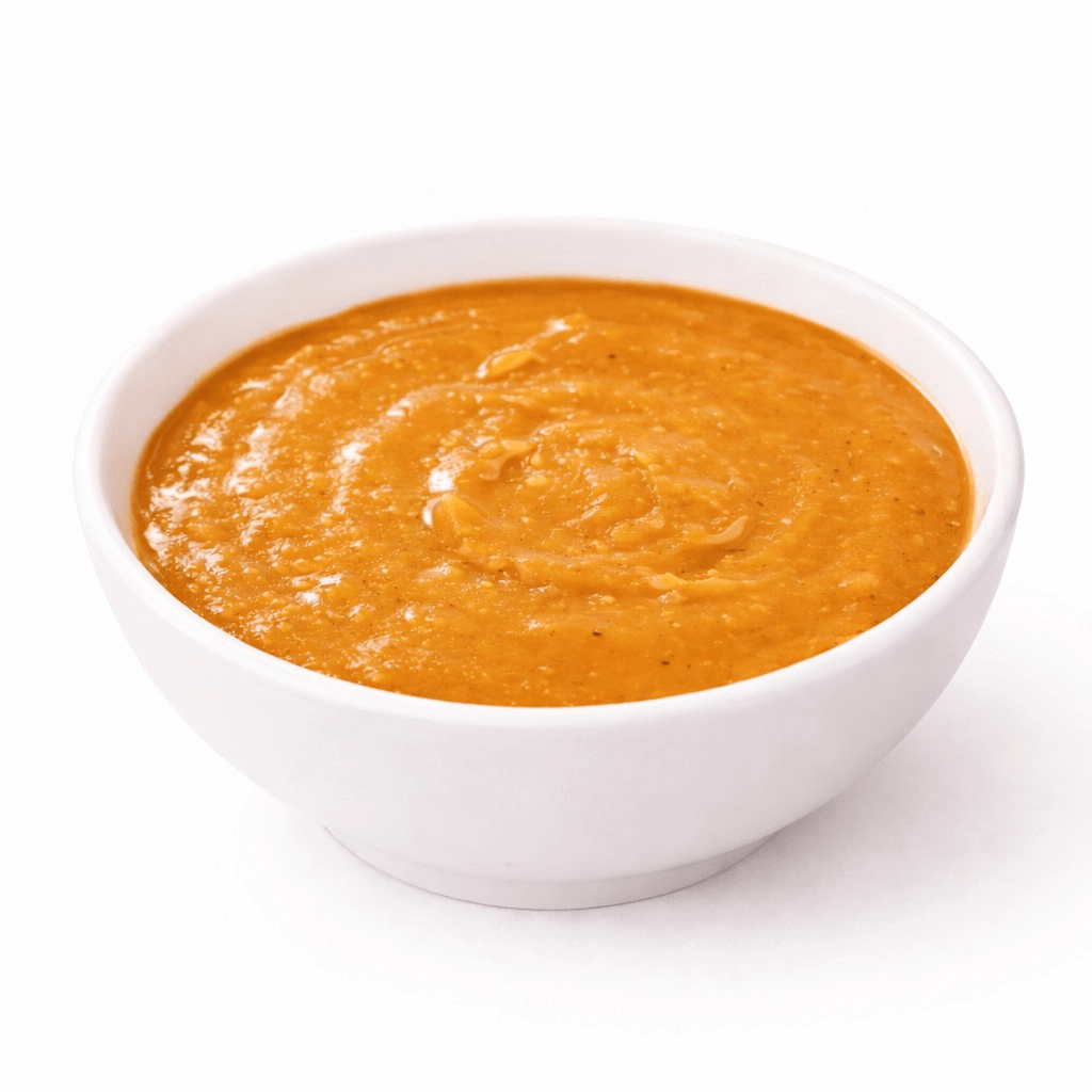 Gluten Free. Red curry with pumpkin, red bell peppers, and fresh basil serve with rice