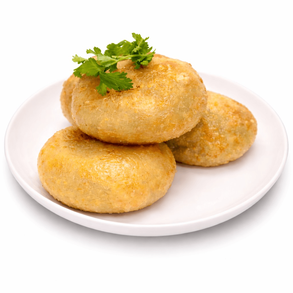 4 pieces. Deep fried egg rolls stuffed with silver noodles, chicken, onions, carrots and taro served with sweet and sour sauce