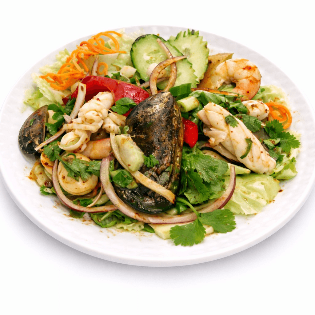 Combination seafood salad mixed with onions and chili paste in lime dressing sauce