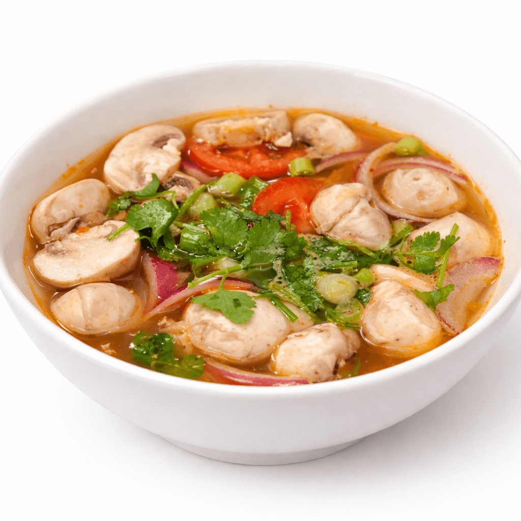 Hot and sour coconut milk, lemon grass, fresh mushrooms, red onions and galangal